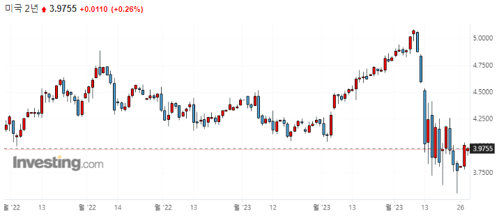 -0.38에서 0.03하락한 -0.41 마감 (22년 4월 1일과 7월 6일 금리차 역전)