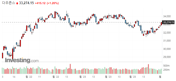 미국 주요 지수 일봉 차트
