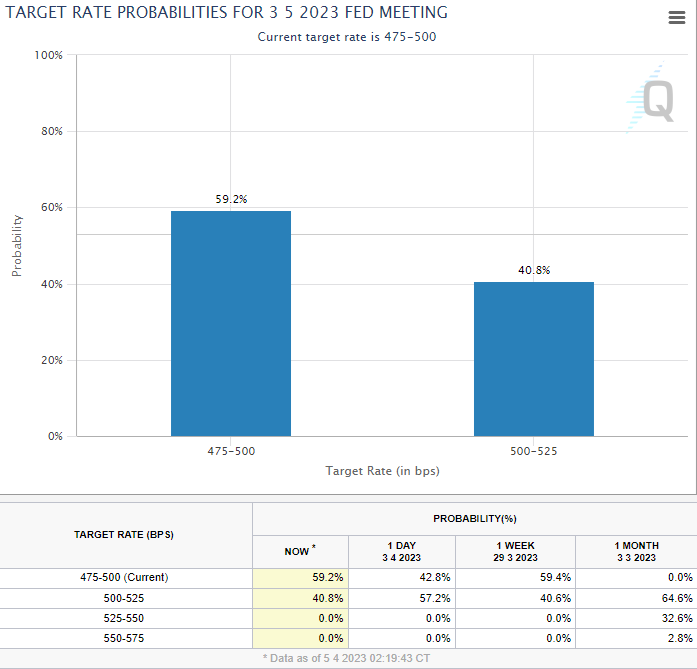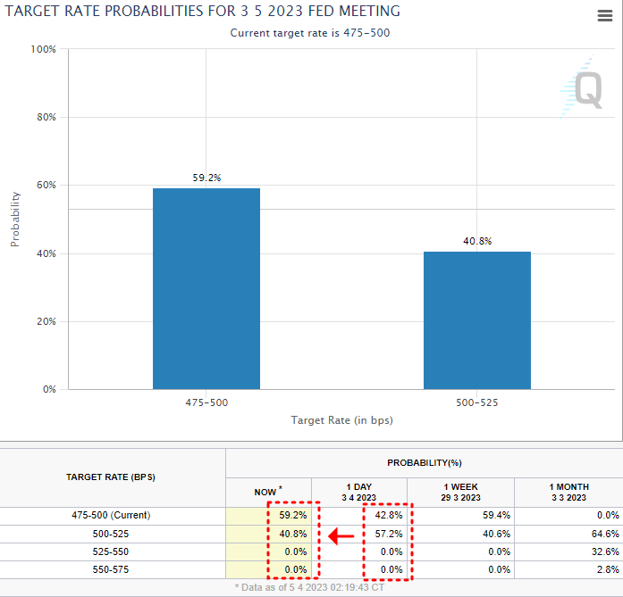 → 4월 4일) 노동부 보고서 발표! 연준 5월 25bp금리 인상 가능성 하락!