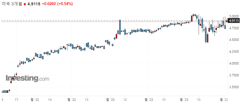 초 단기 금리(3개월 물) : 단기적인 자금 유통과 관련됩니다. 급등은 단기적 시장 위험을 의미