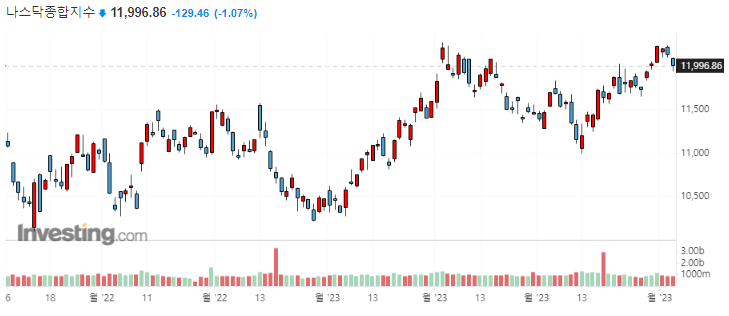 1. 22년 주식 시장에 하락은 사실상 연준이 22년 내내 양적 긴축(QT)을 해서 하락했던 것입니다. 23년 3월 13일 이후, 은행 구제 금융으로 대차대조표가 확대되었기 때문에 연준은 다시 양적 긴축(QT)을 할 수밖에 없습니다.(22년 1년 내내 QT 한 것에서 절반이나 다시 되돌려졌음을 인식해야 합니다. 아래 나스닥 차트가 6개월 일봉 차트이며, 6개월 전에는 나스닥 지수가 10500선이었습니다. ※현재 12000선)