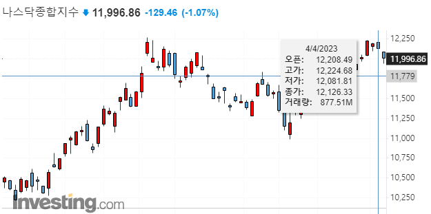 그런데 주식 시장은 오히려 4월 4일 고용 노동부 발표 후, 나스닥 종합 지수는 1%대 하락하였으며, 그 하락세는 4월 5일까지 이어지게 됩니다.