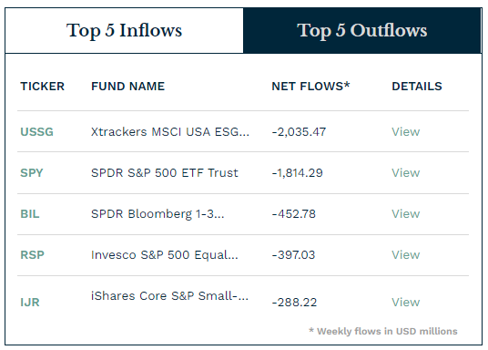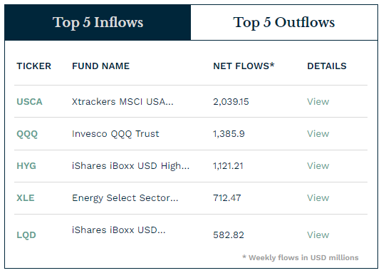 | 순 자금 이동(백만 달러) | 총 규모(백만 달러) | 총 자산에서 순 자금 이동 변동률(%) | |