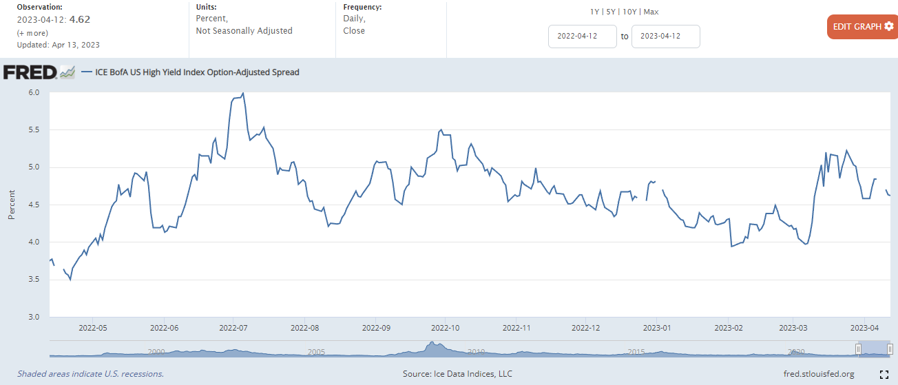 | 미국 채권 시황) 하이일드 스프레드와 FedWatch 금리 인상 예상 _23년4월11일 (0) | 2023.04.11 |