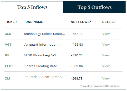 | 순 자금 이동(백만 달러) | 총 규모(백만 달러) | 총 자산에서 순 자금 이동 변동률(%) | |