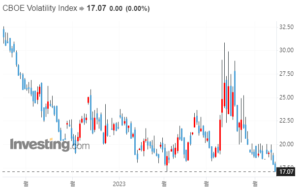 | 미국 주식 시황) 역대 최저치를 갱신하고 있는 VIX지수 _23년4월18일 (0) | 2023.04.18 |