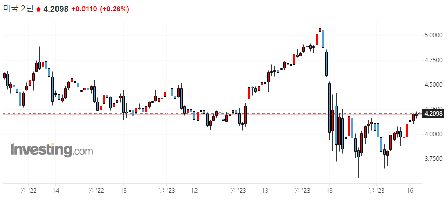 | 미국 채권 시황) 미 국채 금리 다시 상승세로 전환 _23년4월18일 (0) | 2023.04.18 |