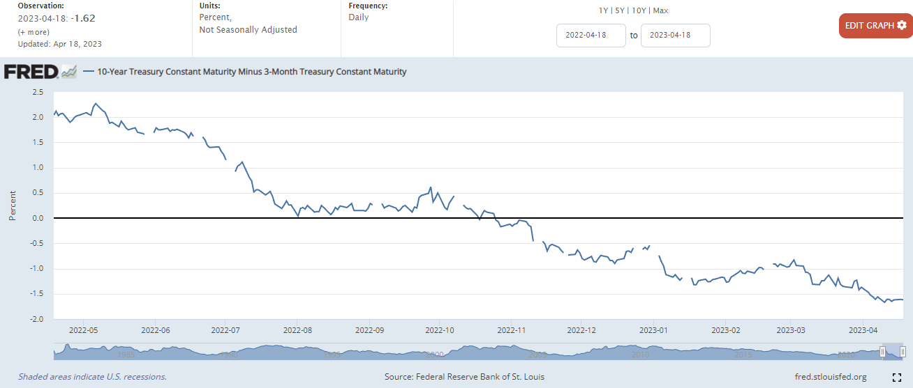 10년물과 3개월 물 금리차