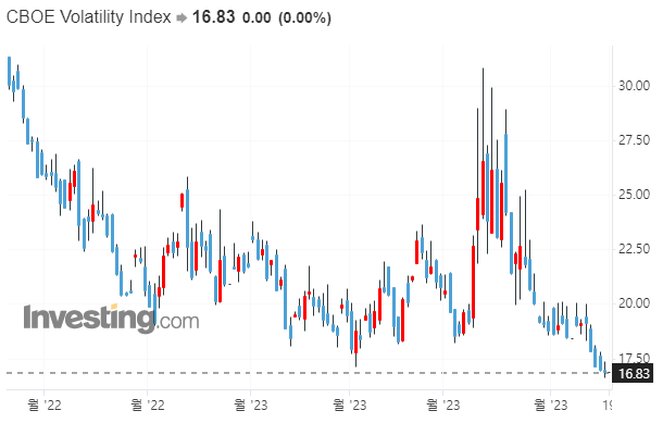 | 미국 주식 시황) 역대 최저치를 갱신하고 있는 VIX지수 _23년4월18일 (0) | 2023.04.18 |