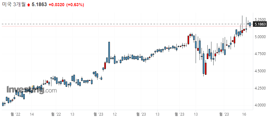 | 미국 채권 시황) 미국 3개월물 국채 금리 고점 돌파 신고가! _23년4월14일 (0) | 2023.04.15 |