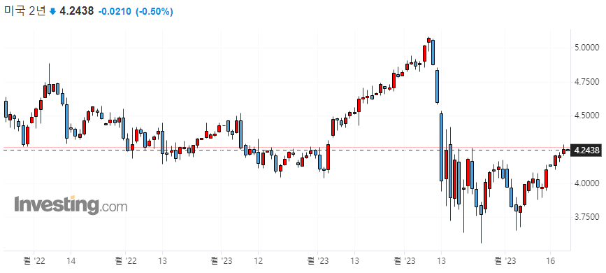 | 미국 채권 시황) 미 국채 금리 다시 상승세로 전환 _23년4월18일 (0) | 2023.04.18 |
