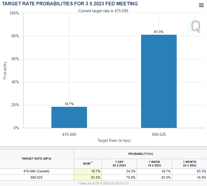이와 관련하여 옐런 재무부 장관은 부채한도 협상이 조속히 완료되어야하며, 만약 부채한도 상향이 실패한다면, 미국채 이자에 대해 지급불능에 처하게되고, 이는 강제적으로 연준이 금리 인상을 해야하는 상황을 초래할 것이라고 경고하였습니다.