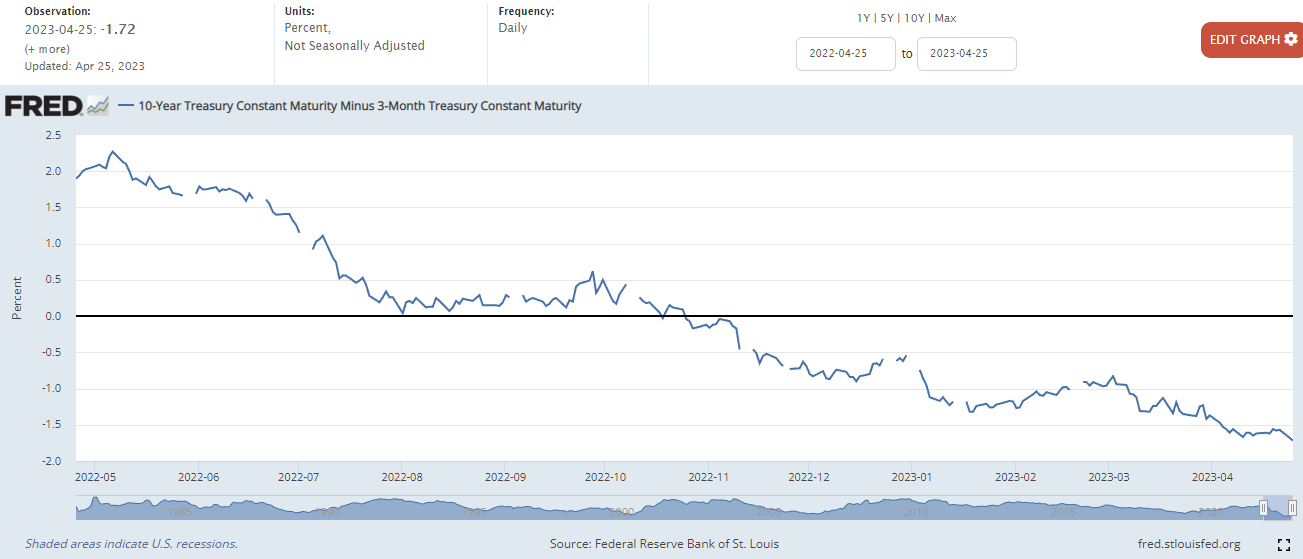 10년물과 3개월 물 금리차