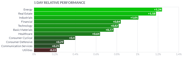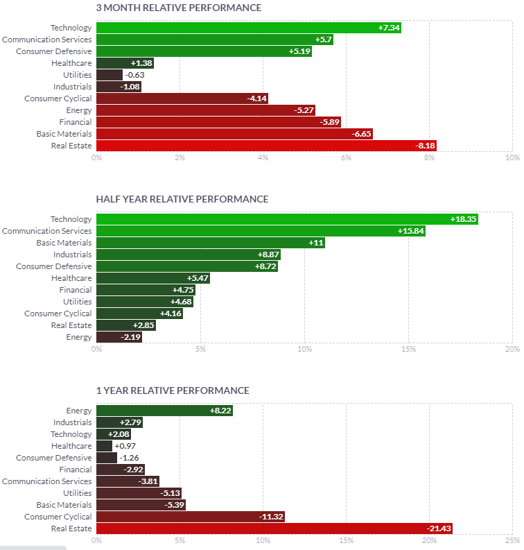 1일/한 달/3달/반년 섹터별 등락률을 통해서, 시장 상황을 가늠해 볼 수 있습니다.