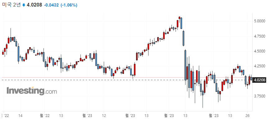 단기 금리(2년 물) : 기준 금리에 크게 영향을 받습니다. 올해 미국 금리가 1.9% 예상되므로 유 사치까지 상승