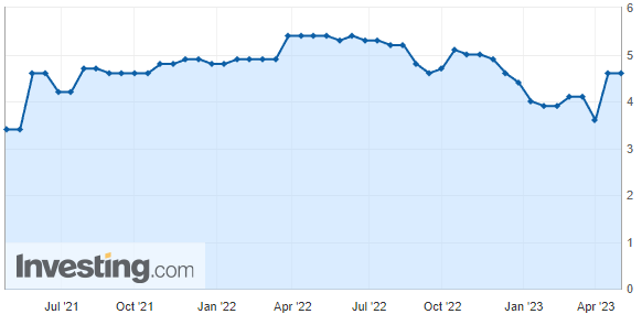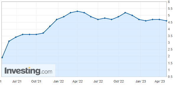 → 근원 개인소비지출 물가지수 (YoY) (3월) 4.6%(예측 4.5%), 근원 소비지출물가지수 (MoM) (3월) 0.3%(예측 0.3%)