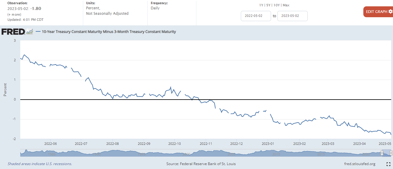 10년물과 3개월 물 금리차