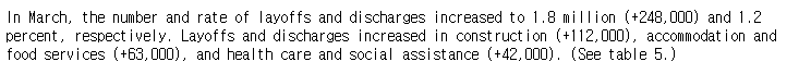 게다가. 최근 발표된 5월 2일 JOLTs보고서를 뜯어보면 많은 수는 아니지만, 해고가 증가하고있음을 알 수 있습니다.