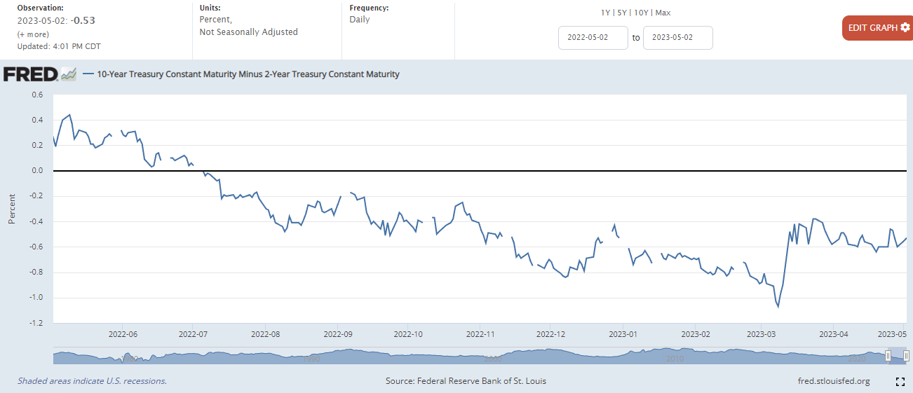 10년물과 2년물 금리차
