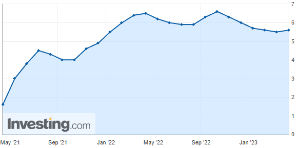 → 근원 소비자물가지수 (YoY) (3월) 5.6% (예측 5.6%), 근원 소비자물가지수 (MoM) (3월) 0.4% (예측 0.4%),