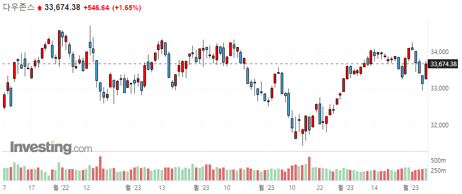 미국 주요 지수 일봉 차트