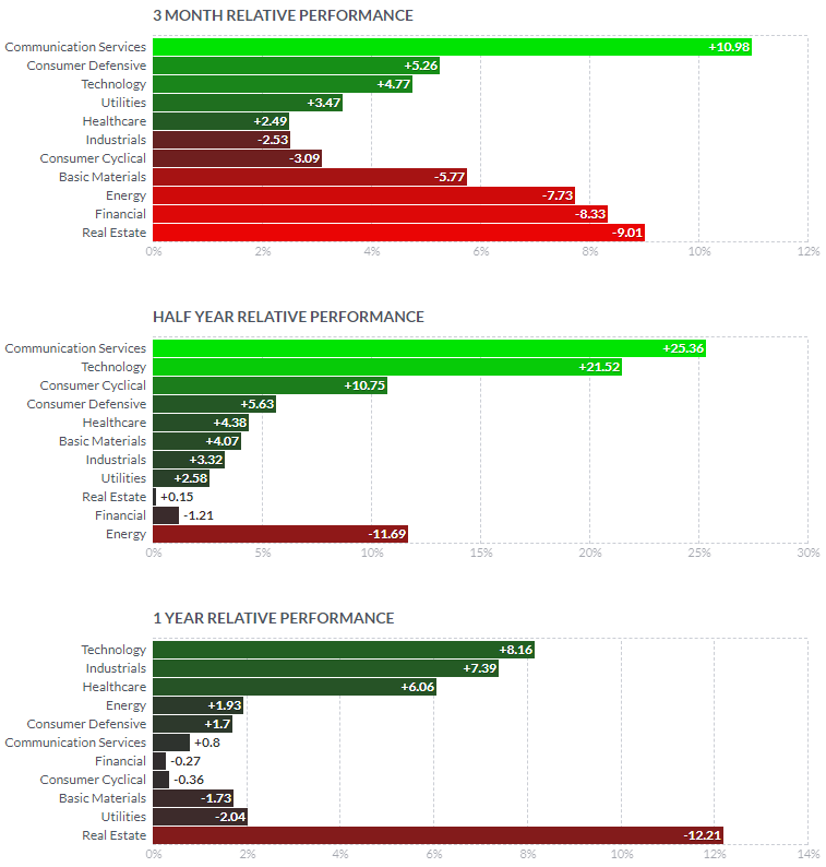 1일/한 달/3달/반년 섹터별 등락률을 통해서, 시장 상황을 가늠해 볼 수 있습니다.
