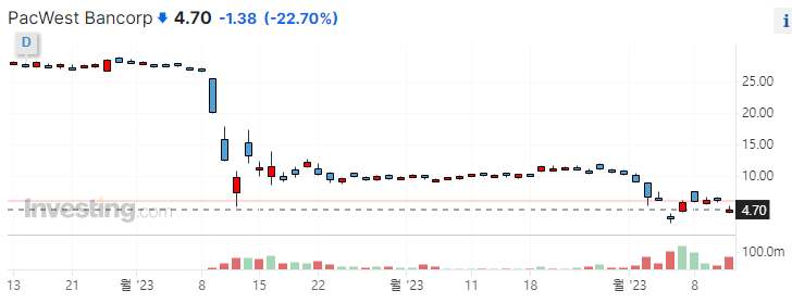 결국 PACW가 예금 인출로 인해 얼마나 큰 위기 상황에 처했는지 투자자 모두가 알 수 있게된 것입니다.