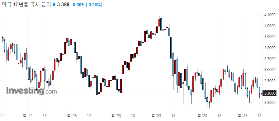 이러한 불안감은 오히려 미국채에 대한 수요 증가로 이어지고 있는 상황입니다. 앞서 말씀드렸던 것처럼 미 국채는 안전자산으로 다소 위기가 있더라도 부채한도 협상은 이루어질 것이라고 본다면, 장기 미 국채의 경우 투자할 만 한하다는 계산인 것입니다.
