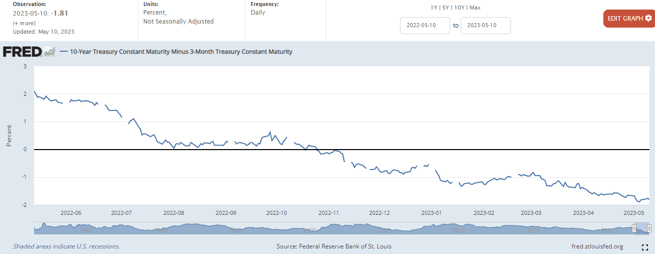 10년물과 3개월 물 금리차