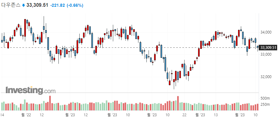 미국 주요 지수 일봉 차트