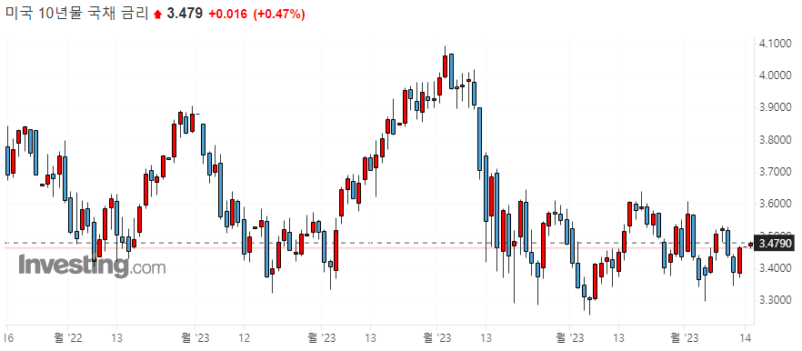 ▷미국 채권 수익률 일봉 차트