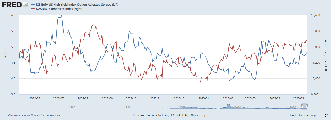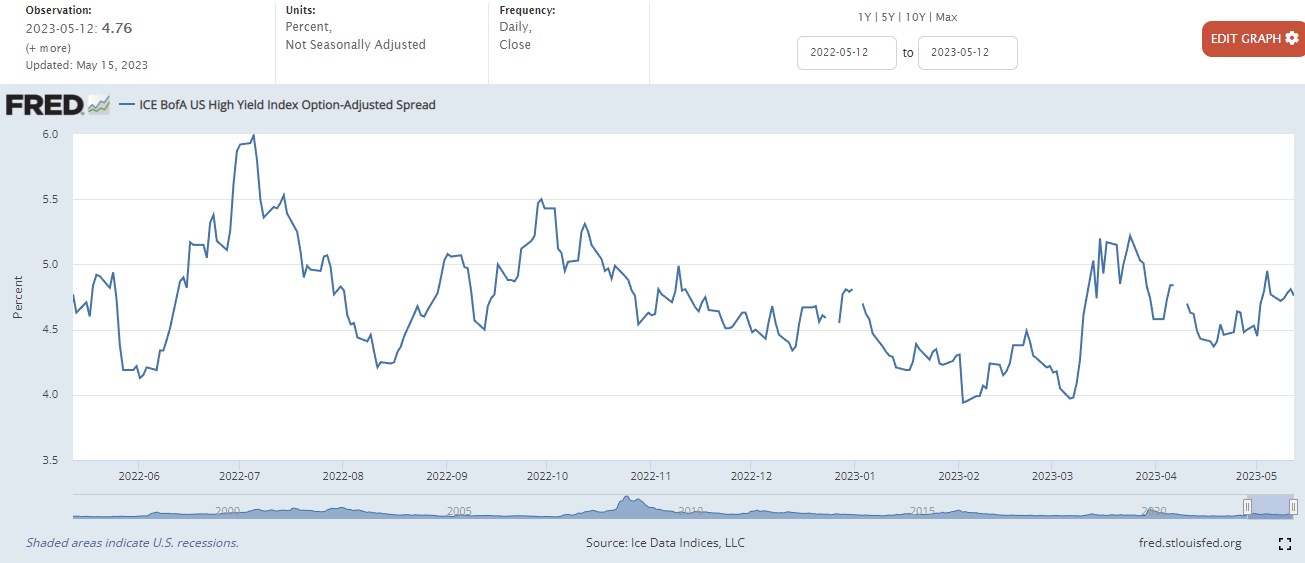 하이일드 채권 스프레드 : 하이일드 채권 수익률에서 국채 수익률을 뺀 값으로, 이 값이 상승하면 시장이 위험하다는 신호로 볼 수 있습니다. 4% 이하로 하락해야 시장이 안정적인 것으로 판단합니다.