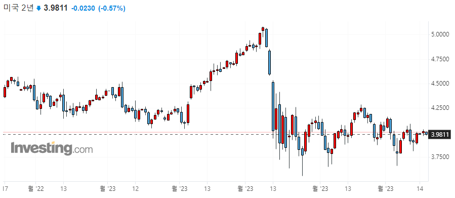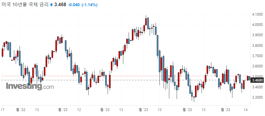 ▷미국 채권 수익률 일봉 차트