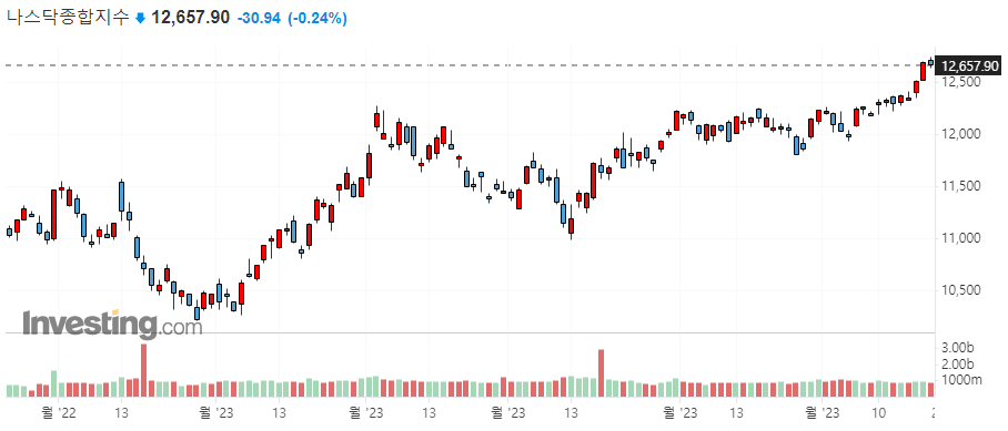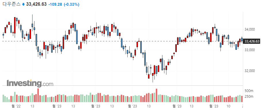 미국 주요 지수 일봉 차트
