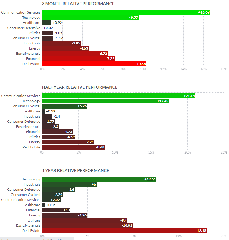 1일/한 달/3달/반년 섹터별 등락률을 통해서, 시장 상황을 가늠해 볼 수 있습니다.