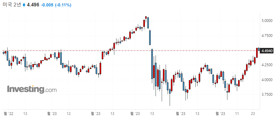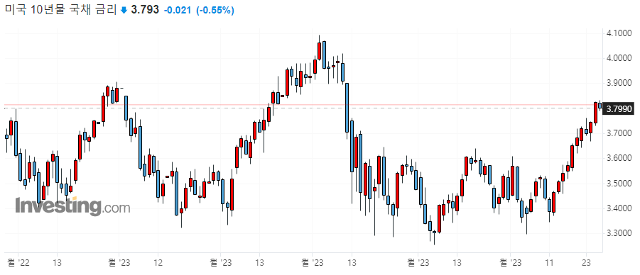 ▷미국 채권 수익률 일봉 차트