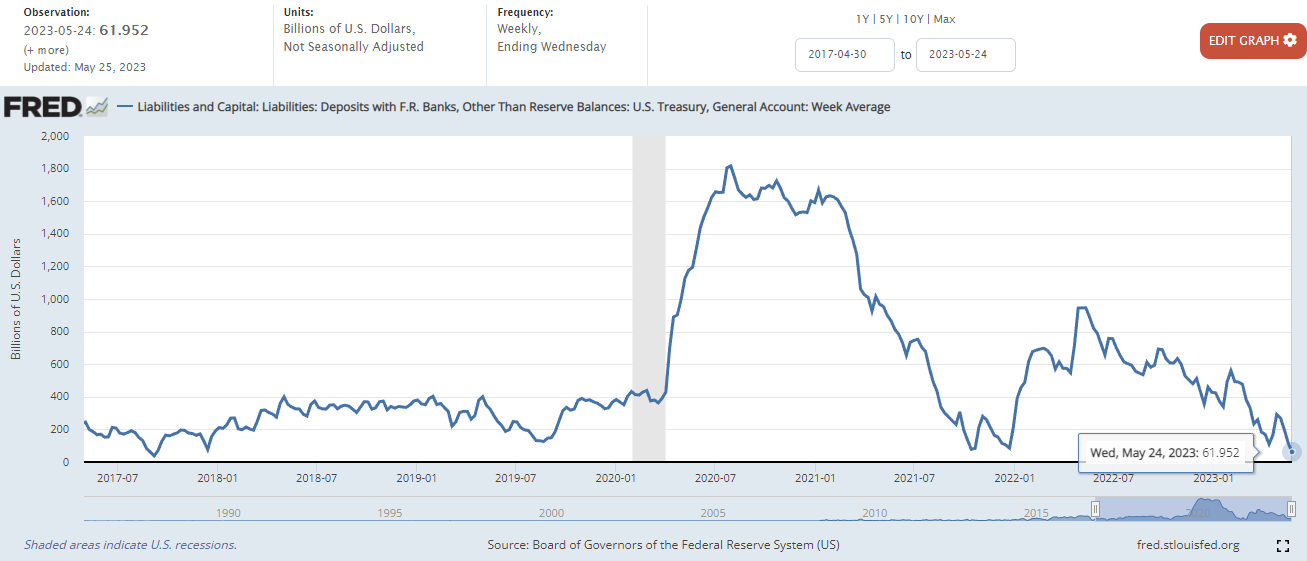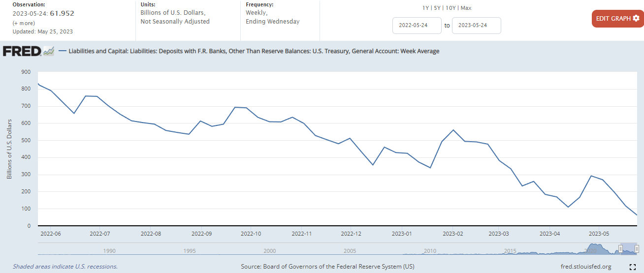 | 미국 채권 시황) 미 정부 TGA 계좌 딱! 일주일 버틸 수 있다? _23년5월22일 (0) | 2023.05.24 |