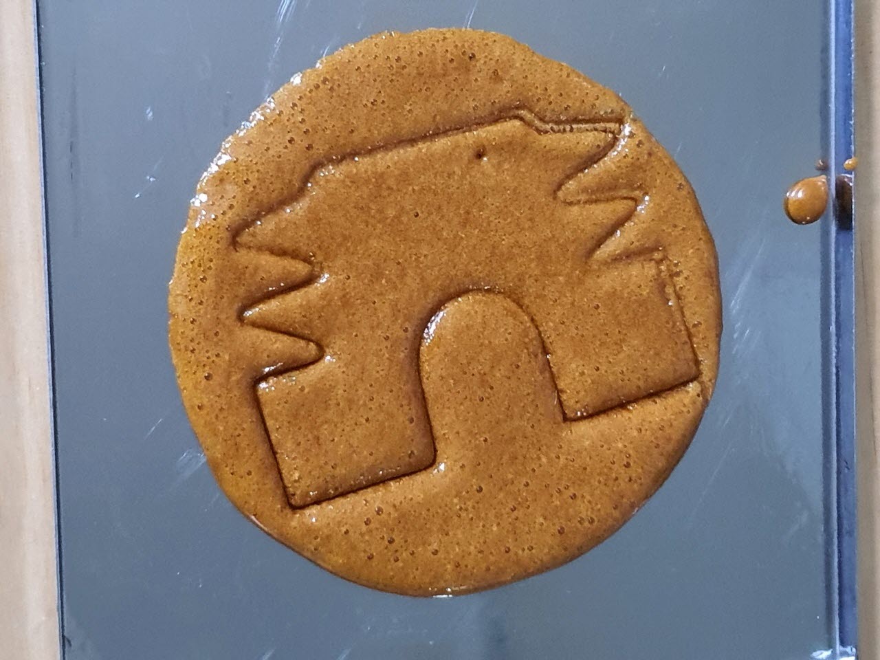 2. Sprinkle sugar(or Cooking oil) carefully before pressing the Dalgona