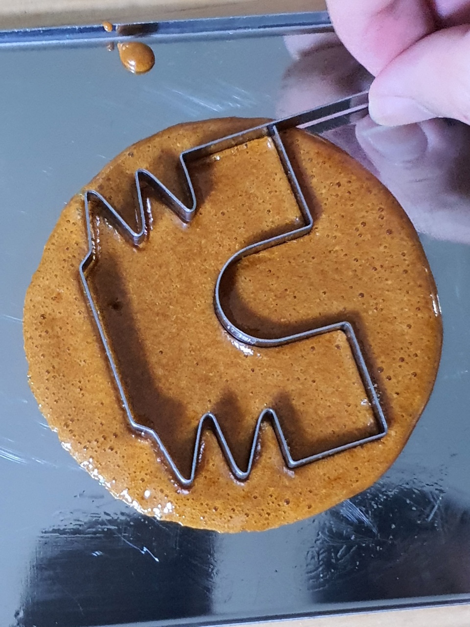 5. 스테인레스 판에 부은 후 누름판으로 눌러줍니다.