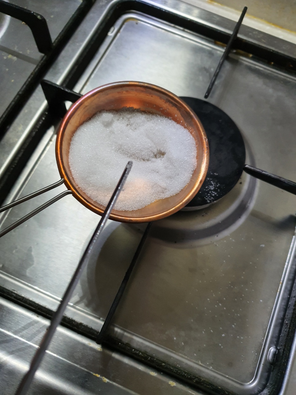 1. 국자에 설탕 두 스푼을 넣어줍니다. (약 20g)