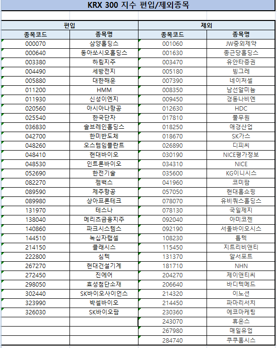 - KRX 300 : 30종목 편입, 33종목 편출