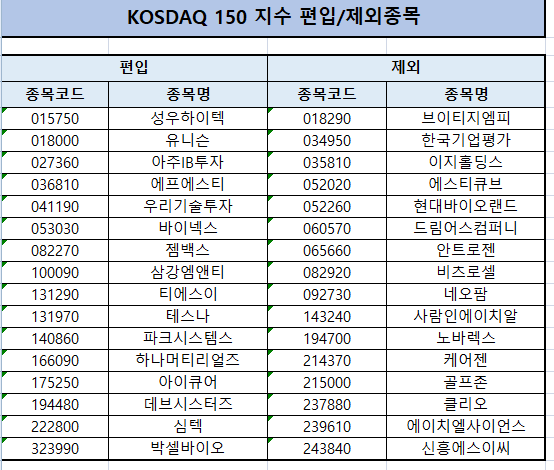 - KOSDAQ 150 : 16종목 편입, 16종목 편출