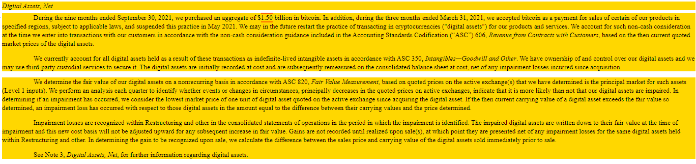 그 회사는 9월 20일에 끝난 9개월 동안 "총 15억 달러의 비트코인을 구매했다"라고 설명했다. 테슬라의 대차대조표는 3분기 실적보고서에서 지난 2분기 비트코인 관련 피해를 보고한 데 이어 12억 6000만 달러 상당의 비트코인을 보여주고 있다.