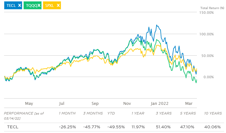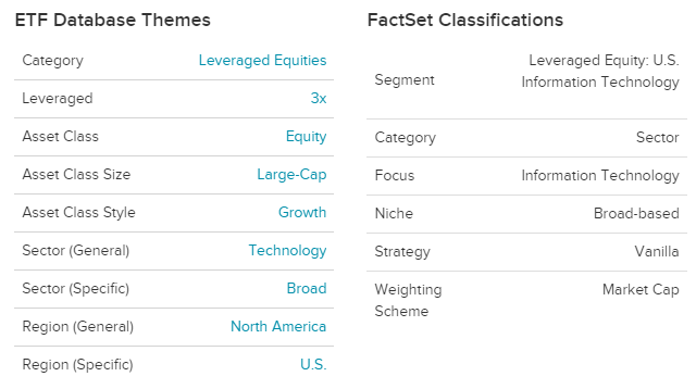 TECL은 매일 재설정되는 S & P Technology Select Sector Index에 대한 3 배 레버리지 노출을 제공합니다. 모든 레버리지 펀드와 마찬가지로 재설정 기간보다 오래 보유하면 변동성 시장에서 저조한 경향이 있으며 단기 거래 포지션에만 적합합니다. 기본 지수 (SSgA의 XLK에 의해 활용되지 않는 형태로 추적 됨)는 S & P 500에 속한 모든 기술 회사로 구성됩니다. 기술 부문에 대한 이러한 광범위한 정의는 TECL에 다양한 통신 서비스, 통신 장비, 반도체 및 사무용 전자 제품. 그러나 포트폴리오는 몇 가지 이름에만 집중되어 있습니다. 이러한 레버리지를 사용할 때의 위험을 명확하게 이해하는 것이 중요합니다. 또한이 제품은 투자를 적극적으로 관리하는 사람 만 사용해야합니다.