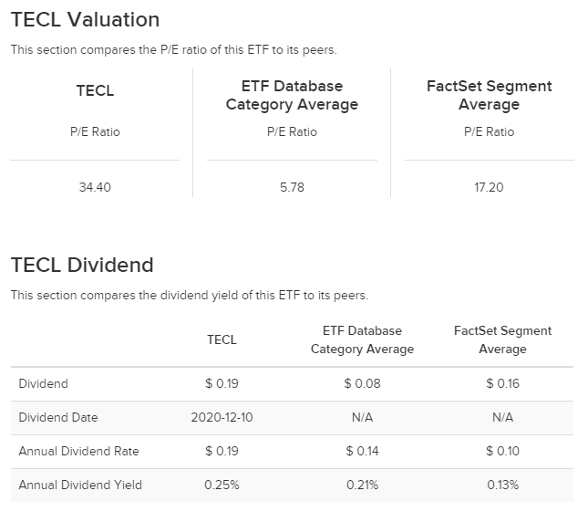 TECL은 미국 대형 기술 회사의 시가 총액 가중 지수에 3 배 레버리지 노출을 제공합니다.