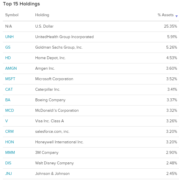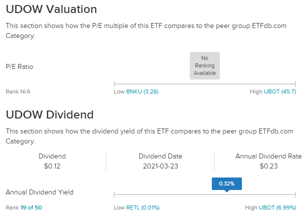 UDOW는 미국 최대 기업 30개를 포함하는 가격 가중 다우 존스 산업 평균에 3 배 레버리지 익스포저를 제공합니다.
