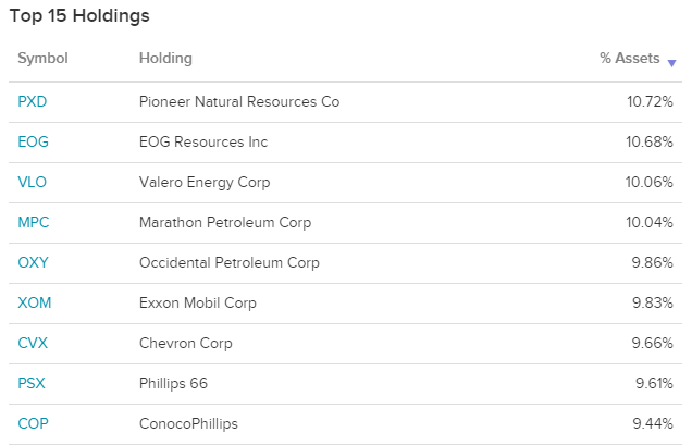 인기있는 에너지 기업인 XOM와 CVX가 포함되어있습니다. 또한 최근 워런 버핏이 많이 구매하였다는 OXY도 함께 포트폴리오에 포함되어있습니다.