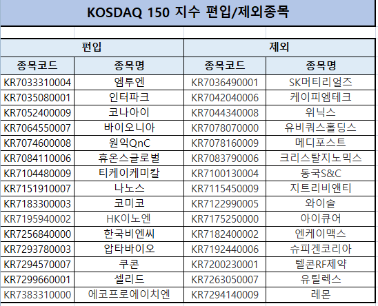 코스피200, 코스닥150, KRX300에 편입, 편출은 주가에 큰 영향을 줄 수 있는 만큼,