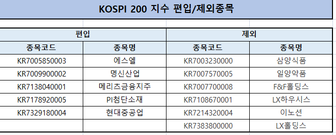 - KOSPI 200 : 5종목 편입, 6종목 편출