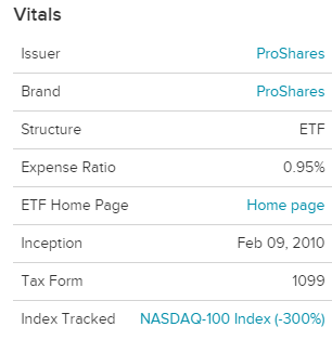 SQQQ (ProShares UltraPro Short QQQ) 인버스 3배 ETF